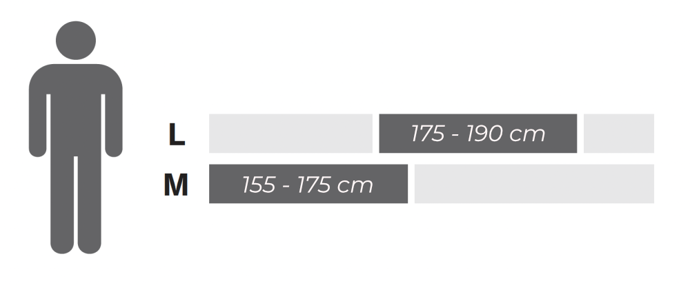 Doporučené velikosti pro postavy: 155 - 175 cm (vel.M), 175 - 190 cm (vel. L)