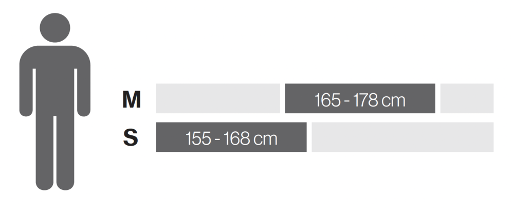 Doporučené velikosti pro postavy: 155 - 168 cm (vel.S), 165 - 178 cm (vel. M)